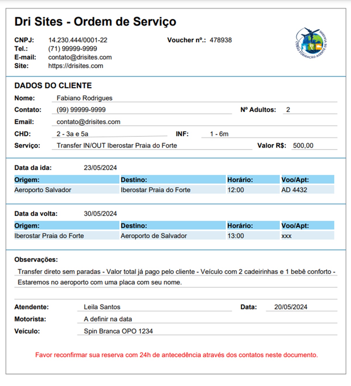Emissor de voucher para Agências de Turismo Receptivo, que oferecem serviços de transfers e passeios. Este sistema permite emitir um voucher de serviço em PDF para enviar ao seu cliente quando ele fizer uma reserva em sua empresa.